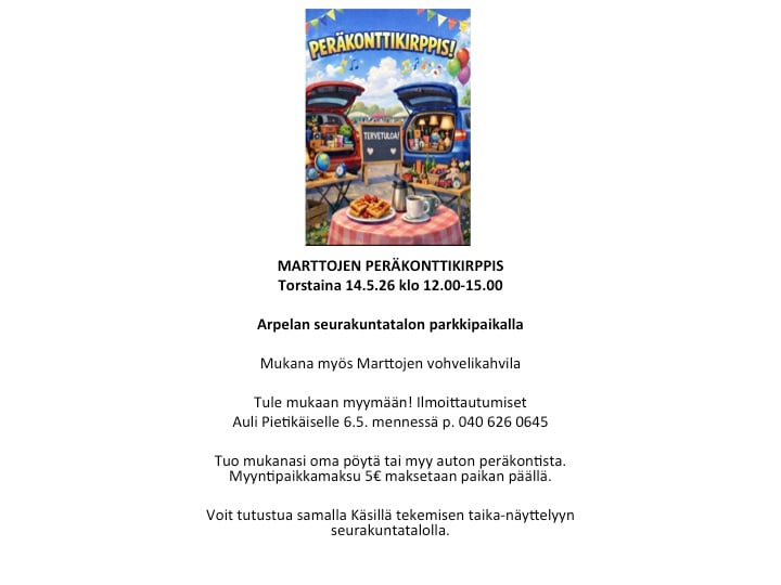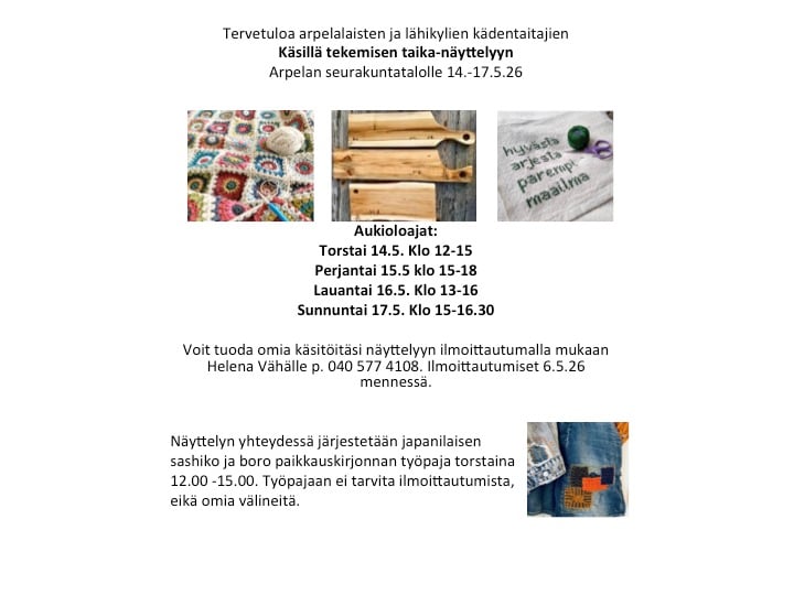 - lauantai 23.5. kello 9–15